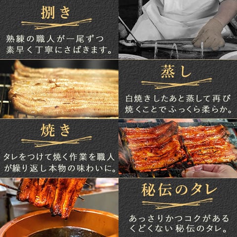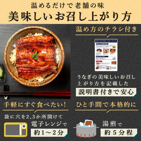 | 原材料 | うなぎ蒲焼き:ニホンウナギ(国産)、しょうゆ(小麦を含む)、糖類(砂糖、ブドウ糖果糖液糖、水あめ)、みりん、でんぷん、カラメル色素、アナトー、調味料(アミノ酸等)、(原材料の一部に小麦、大豆を含む) 付属のタレ・山椒:しょうゆ(本醸造)、砂糖、みりん、(原材料の一部に小麦、大豆を含む)、さんしょう |