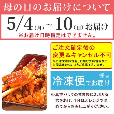 | 内容量 | カット蒲焼(85g-95g)2枚 たれ・山椒・お吸い物 |