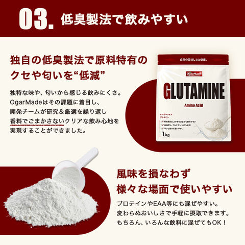 グルタミン パウダー 1kg 粉末 純度100% 国内加工 OgarMade (オーガーメイド)