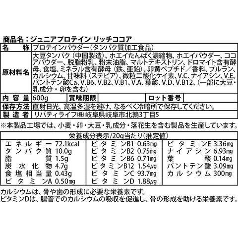 ジュニアプロテイン プロテイン (600g) (リッチココア) 栄養機能食品 ダイエット ステビア甘味料使用 置き換え 選べるフレーバー 国内製造 OgarMade (オーガーメイド)