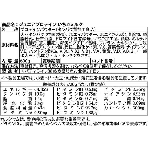 ジュニアプロテイン プロテイン (600g) (いちごミルク) 栄養機能食品 ダイエット ステビア甘味料使用 置き換え 選べるフレーバー 国内製造 OgarMade (オーガーメイド)