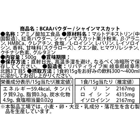 BCAA (500g) (シャインマスカット) アミノ酸 筋トレ 選べるフレーバー 国内製造 (SAIJIRUSHI) サイジルシ