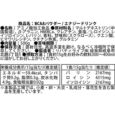 BCAA (500g) (エナジードリンク) アミノ酸 筋トレ 選べるフレーバー 国内製造 (SAIJIRUSHI) サイジルシ