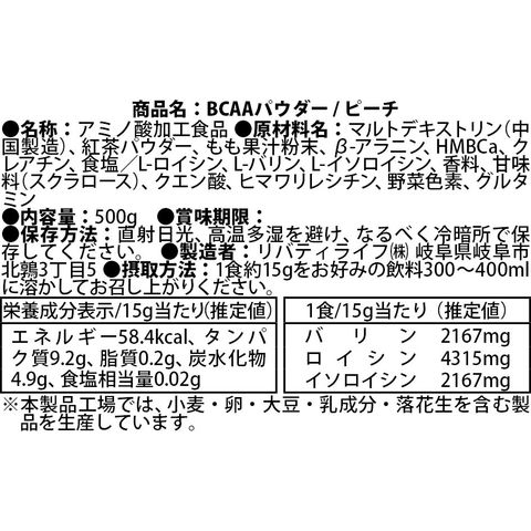 BCAA (500g) (ピーチ) アミノ酸 筋トレ 選べるフレーバー 国内製造 (SAIJIRUSHI) サイジルシ