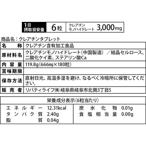 クレアチンタブレット (180粒) 筋トレ 国内製造 (SAIJIRUSHI) サイジルシ