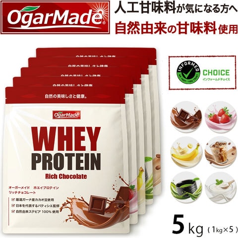 ホエイプロテイン (5kg) (ナチュラルバナナ) WPC ステビア使用 選べるフレーバー 国内製造 OgarMade (オーガーメイド)