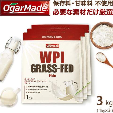 アイソレート ホエイプロテイン (3kg) (プレーン) WPI グラスフェッド ステビア使用 選べるフレーバー OgarMade (オーガーメイド)