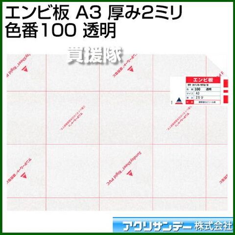 アクリサンデー エンビ板 A3 厚み2ミリ 色番100 透明 100 [カラー:透明] [サイズ:A3] 【硬質塩化ビニール板 アクリル板 工作 DIY 小物 】【おしゃれ おすすめ】