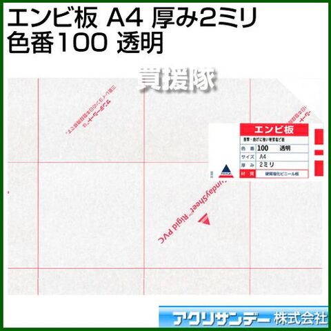 アクリサンデー エンビ板 A4 厚み2ミリ 色番100 透明 100 [カラー:透明] [サイズ:A4] 【硬質塩化ビニール板 アクリル板 工作 DIY 小物 】【おしゃれ おすすめ】