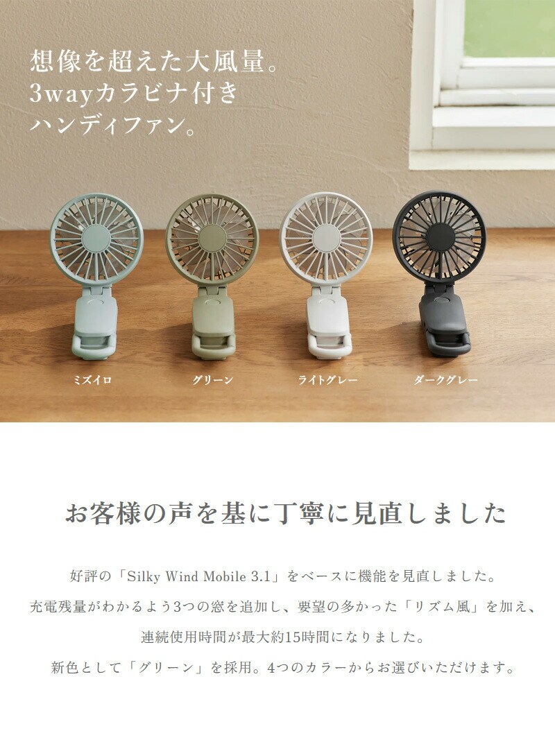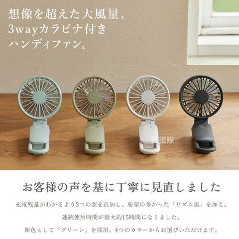 想像を超えた大風量。3wayカラビナ付きハンディファン。