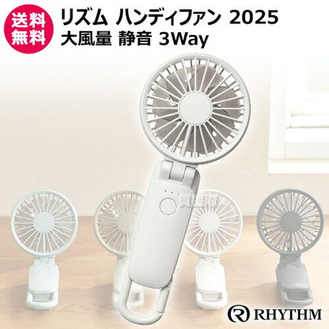 【RHYTHM 軽量 小型 コンパクト Type-C 風量5段階 3Way 手持ち 首掛け 首かけ 卓上 デスクファン ポータブルファン オフィス 通勤 通学 アウトドア 防災】
