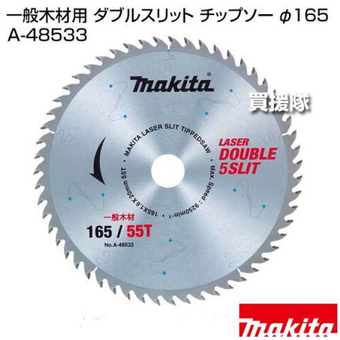 マキタ 一般木材用 ダブルスリット チップソー φ165 A-48533 【高剛性 台金 高精度 切断 平刃 直進 ダブルスリット 丸鋸 マルノコ 丸ノコ 充電式 プランジ 工具 用品 makita 純正品 パーツ 部品 消耗品 交換 変え】【おしゃれ おすすめ】