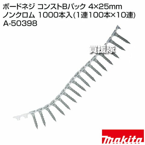 マキタ ボードネジ コンストBパック 4×25mm ノンクロム 1000本入(1連100本×10連) A-50398 【石膏ボード 木下地 鋼製下地 固定 適用 6840 6841 スクリュードライバ 工具 用品 makita 純正品 パーツ 部品 消耗品 交換 】【おしゃれ おすすめ】
