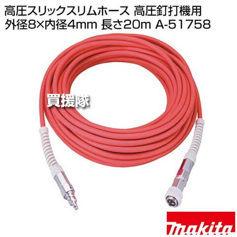 マキタ 高圧スリックスリムホース 高圧釘打機用 外径8×内径4mm 長さ20m A-51758 【エア工具 軽量 細い 反動低減 内径4mm ワンタッチジョイント ロータリー付 工具 用品 makita 純正品 パーツ 部品 消耗品 交換 変え】【おしゃれ おすすめ】