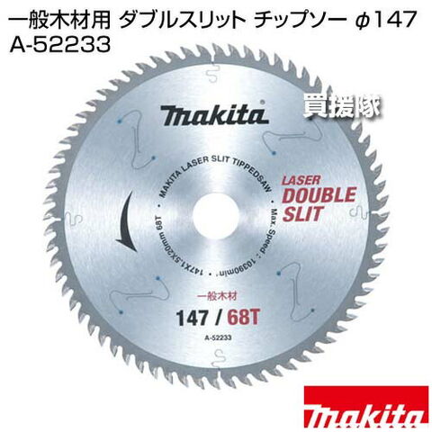 マキタ 一般木材用 ダブルスリット チップソー φ147 A-52233 【造作用 台金 高精度 切断 平刃 直進 ダブルスリット 丸鋸 マルノコ 丸ノコ 工具 用品 makita 純正品 パーツ 部品 消耗品 交換 変え 替え オプション品】【おしゃれ おすすめ】