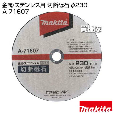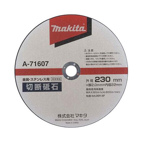 マキタ 金属・ステンレス用 切断砥石 φ230 A-71607 【両面補強 軽天材 一般鋼 切断 耐久 安定 切断機 CE090D 工具 用品 makita 純正品 パーツ 部品 消耗品 交換 変え 替え オプション品】【おしゃれ おすすめ】