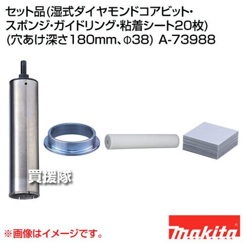 マキタ セット品(湿式ダイヤモンドコアビット・スポンジ・ガイドリング・粘着シート20枚)(穴あけ深さ180mm、Φ38) A-73988 【ハイチップ 適用 HR244D HR282D 001G 工具 用品 makita 純正品 パーツ 部品 消耗品 交換 変え 替え オプション品】【おしゃれ おす