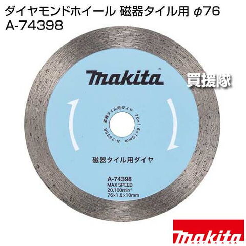 マキタ ダイヤモンドホイール 磁器タイル用 φ76 A-74398 【適用 カッタ MC300D 切断 工具 用品 makita 純正品 パーツ 部品 消耗品 交換 変え 替え オプション品】【おしゃれ おすすめ】