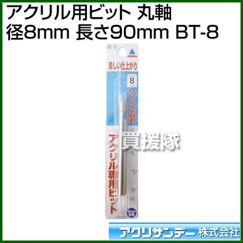 アクリサンデー アクリル用ビット 丸軸 径8mm 長さ90mm BT-8 [サイズ:8mm] 【工具 電動工具 DIY ツール 工具 用品 大工 日曜大工 穴あけ 穴 ネジ オプション アクセサリー】【おしゃれ おすすめ】