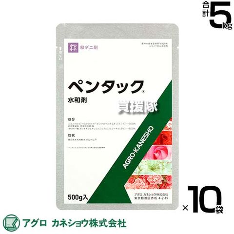 アグロカネショウ ペンタック水和剤 500g×10袋 【花き類 観葉植物 ハダニ 成幼虫 防除 防除剤 遅効的ながら効果が高く 長期間発生 抑制 ジエノクロル水和剤 他剤に抵抗性のついたハダニにも有効 希釈 原液 水でうすめてまくだけ 希釈タイプ 原液タイプ 水で薄める】