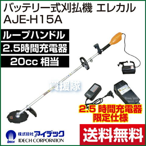 アイデック エレカル(軽量タイプ刈払い機) 2.5時間充電器セット【ループハンドル】 AJE-H15A【アイデック 刈払 草刈 芝刈 草刈り 芝刈り 草刈機 電動 刈払機 メーカー 安定 刈払い 草刈り機 充電式 刈払い機 バッテリー】【おしゃれ おすすめ】