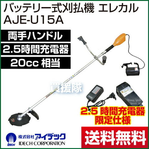 アイデック エレカル(軽量タイプ刈払い機) 2.5時間充電器セット【両手ハンドル】 AJE-U15A【アイデック 刈払 草刈 芝刈 草刈り 芝刈り 草刈機 電動 刈払機 メーカー 安定 刈払い 草刈り機 充電式 刈払い機 バッテリー】【おしゃれ おすすめ】