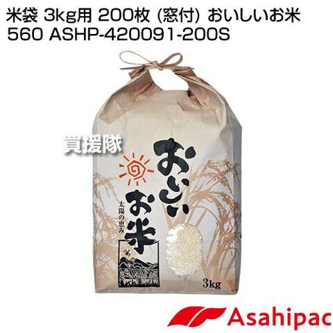 《法人限定》アサヒパック 米袋 3kg用 200枚 (窓付) おいしいお米 560 【保湿タイプ 紐付き 米袋 紙袋 クラフト 紙 窓付き 玄米 精米 保管 保存 贈答用 贈り物 プレゼント おすそ分け プチギフト 包装材】【おしゃれ おすすめ】