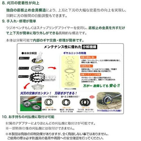 しかも下刃の回転で刈刃がコマのように動くので余分な力がいりません。