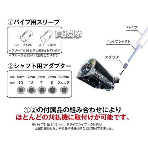 ※パイプ外径25.4mm用スリーブは別売となります(海外メーカーの一部)特殊な刈払機。