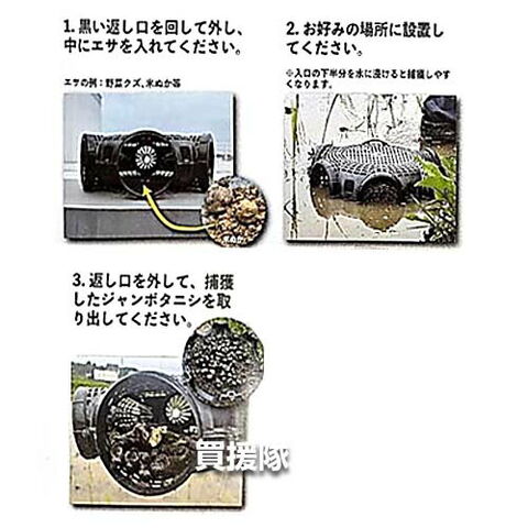 ジャンボタニシの捕獲器、ジャンボタニシをエサで誘引して捕獲します!