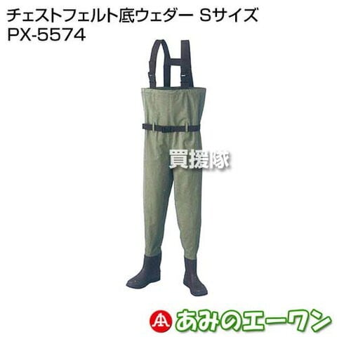 エーワン チェストフェルト底ウェダー Sサイズ PX-5574 【河川 川 ガサゴソ 魚とり 魚 捕獲 用品 グッズ 服 作業服 フエルト 靴底 ソール コケ 苔 撥水 快適裏地加工 ウエストベルト】【おしゃれ おすすめ】