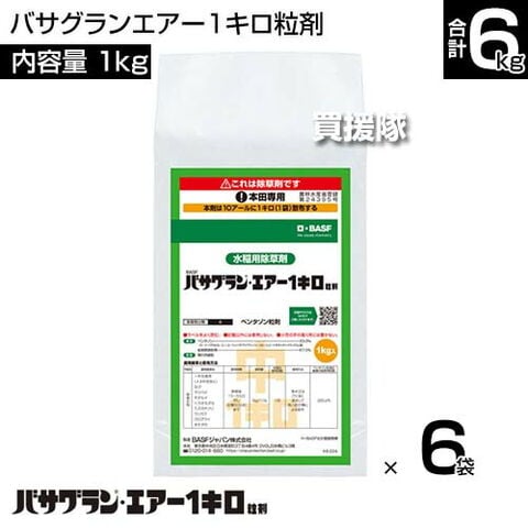 BASF バサグランエアー1キロ粒剤 1kg×6袋セット 【ドローン散布 中期 後期 生育期処理 水稲 すいとう 水田 田んぼ 稲 イネ 水稲栽培 用 除草剤 雑草 草 対策 一年生広葉 カヤツリグサ 多年生雑草 クログワイ】【おしゃれ おすすめ】
