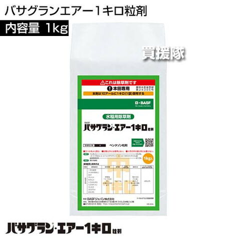 BASF バサグランエアー1キロ粒剤 1kg 【ドローン散布 中期 後期 生育期処理 水稲 すいとう 水田 田んぼ 稲 イネ 水稲栽培 用 除草剤 雑草 草 対策 一年生広葉 カヤツリグサ 多年生雑草 クログワイ オモダカ ホタルイ 】【おしゃれ おすすめ】