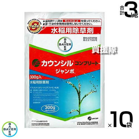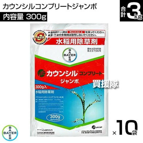 バイエル カウンシルコンプリートジャンボ 300g×10袋セット 【安全性 鉄コーティング 直播 水稲 すいとう 水田 田んぼ 稲 イネ 水稲栽培 用 除草剤 雑草 草 対策 一発処理 ノビエ 3葉期 クログワイ オモダカ】【おしゃれ おすすめ】