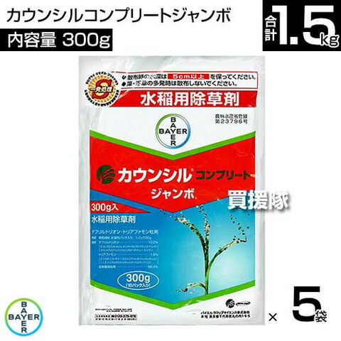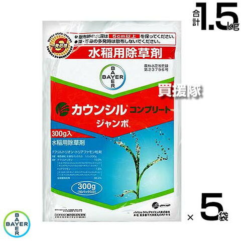 バイエル カウンシルコンプリートジャンボ 300g×5袋セット 【安全性 鉄コーティング 直播 水稲 すいとう 水田 田んぼ 稲 イネ 水稲栽培 用 除草剤 雑草 草 対策 一発処理 ノビエ 3葉期 クログワイ オモダカ コウキヤ】【おしゃれ おすすめ】