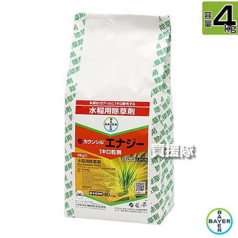 バイエル カウンシルエナジー1キロ粒 4kg 【初期 中期 一発処理 田植同時散布 水稲 すいとう 水田 田んぼ 稲 イネ 水稲栽培 用 除草剤 雑草 草 対策 ノビエ 3葉期 クログワイ オモダカ コウキヤガラな キシュウスズメ】【おしゃれ おすすめ】