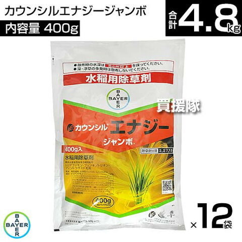 《法人限定》バイエル カウンシルエナジージャンボ 400g×12袋セット 【直播 水稲 すいとう 水田 田んぼ 稲 イネ 水稲栽培 用 除草剤 雑草 草 対策 ノビエ 3葉期 クログワイ オモダカ コウキヤガラや】【おしゃれ おすすめ】