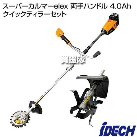 アイデック スーパーカルマーelex 両手ハンドル 4.0Ah クイックティラーセット 【エレックス 58V パワフル 安心 安全 静音性 騒音 飛び石 対策 障害物 キワ刈り プロ 初心者 刈払機 除草 草刈機 草刈り機 充電式 耕す】【おしゃれ おすすめ】