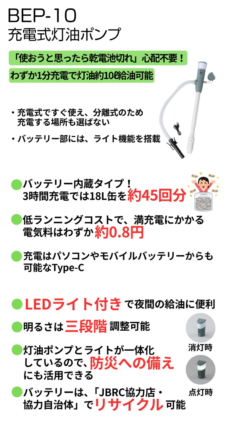 工進 灯油ポンプ 充電式 12L/分 自動停止 BEP-10 【バッテリー内蔵型 灯油 給油 吸油 ポンプ LEDライト付き 非常用 ランタン 照明 ロータンク 対応 1年保証 満タン オートストップ 機能付き 冬 ストーブ ポリタンク 用品】【おしゃれ おすすめ】