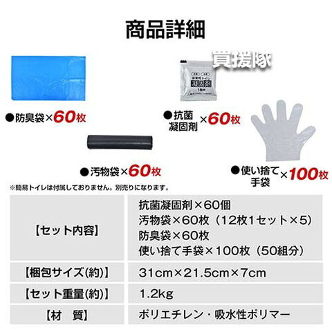 品名 凝固剤セット 120回分(60回分×2個) 簡易トイレ用 15年保管対応