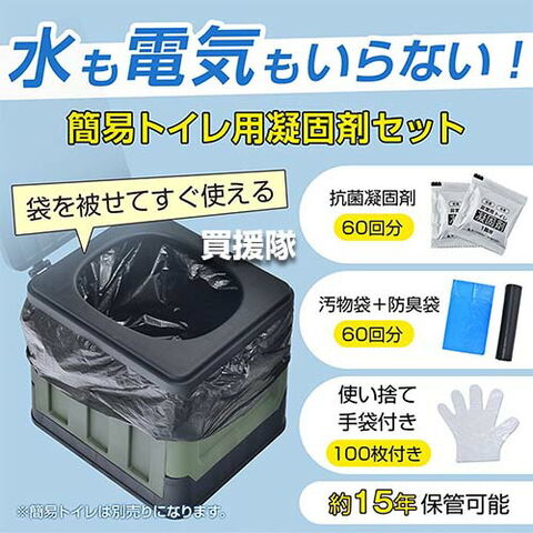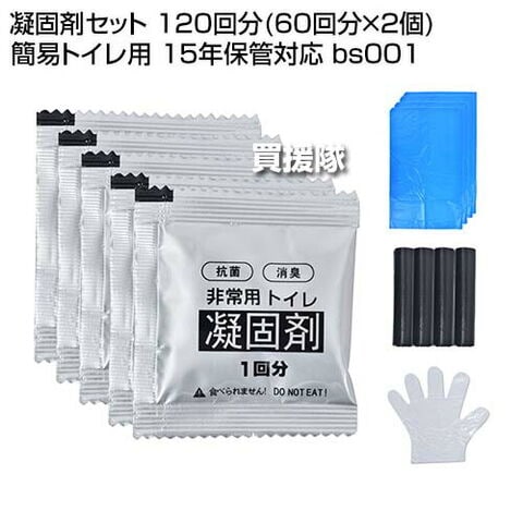 凝固剤セット 120回分(60回分×2個) 簡易トイレ用 15年保管対応 bs001 【非常用 簡易トイレ 折り畳み式 便座 簡易トイレ 用 凝固剤 袋 手袋 付き 防臭 抗菌 効果 ラクラク処理 携帯 吸収 凝固 防災 非常用 災害 非常時】【おしゃれ おすすめ】