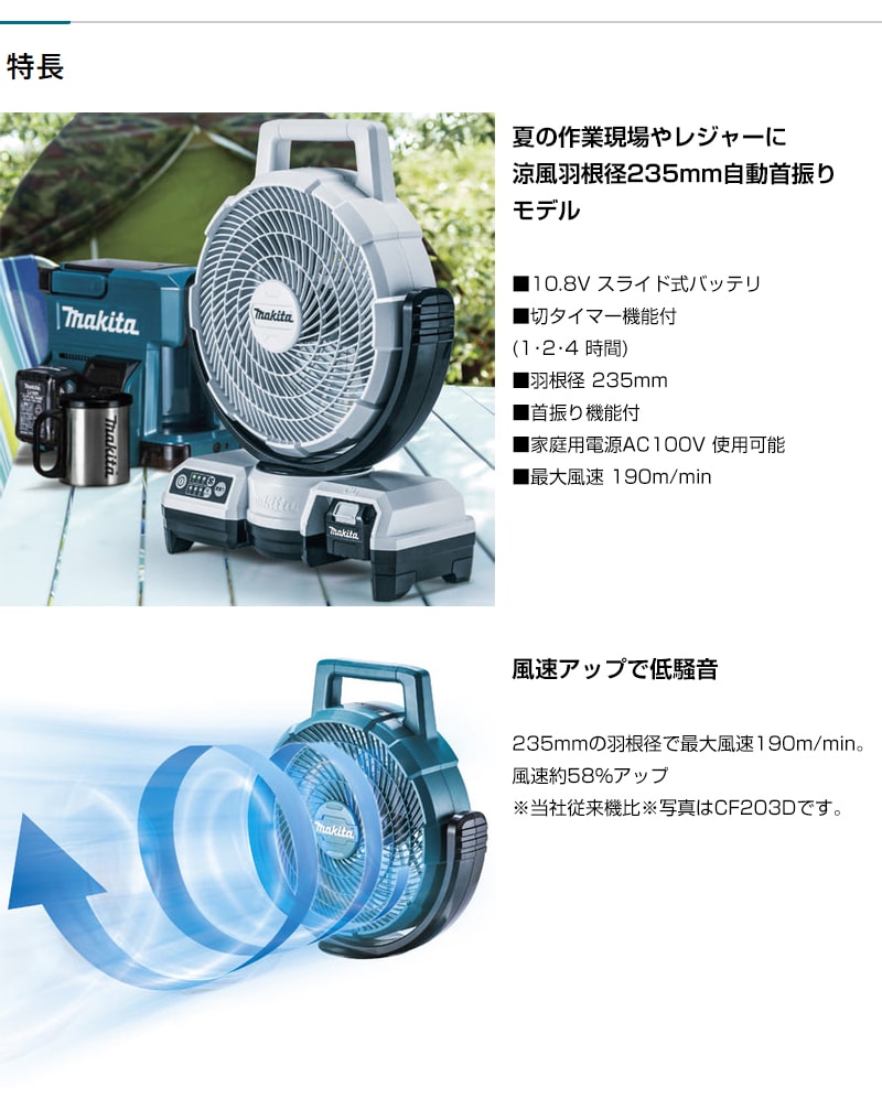 マキタ 充電式ファン 白 [本体のみ/バッテリ・充電器別売] CF202DZW 【扇風機 せんぷうき サーキュレーター 空気 循環 充電式 電気式 小型 軽量 卓上 ファン 節電 夏 純正 正規品 日本仕様 新品 makita 】【おしゃれ おすすめ】