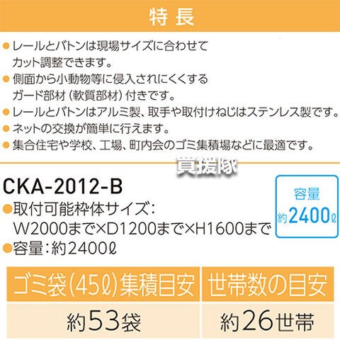 品名 ゴミ集積場用 クリーンストッカー ネットタイプ 幅200×奥行120×高160cmまで 目安約26世帯