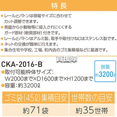 品名  ゴミ集積場用 クリーンストッカー ネットタイプ 幅200×奥行160×高120cmまで 目安約35世帯
