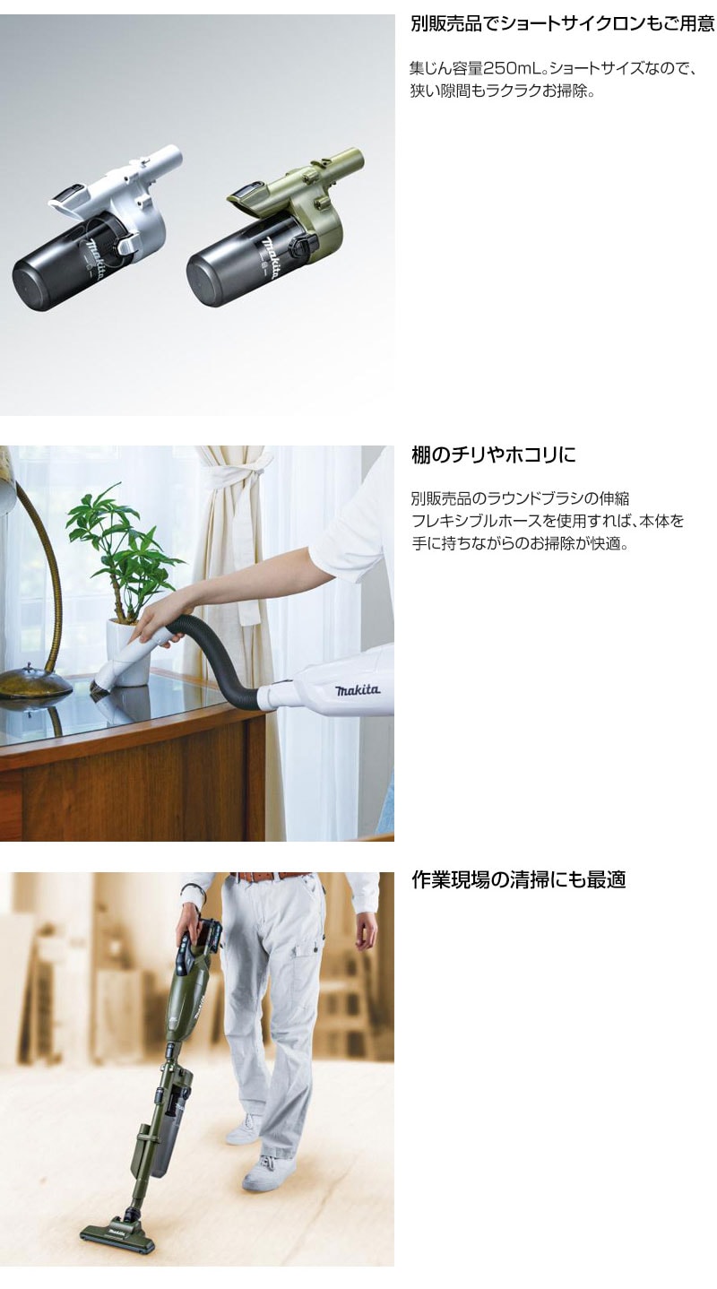 【別販売品でショートサイクロンもご用意】集じん容量250mL。ショートサイズなので、狭い隙間もラクラクお掃除。