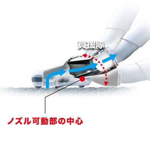 【吸引時の騒音も低減】ノズル可動部の改良により、どの角度においてもスムーズな風の流れ。