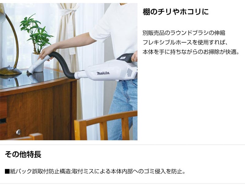 【その他特長】紙パック誤取付防止構造:取付ミスによる本体内部へのゴミ侵入を防止。