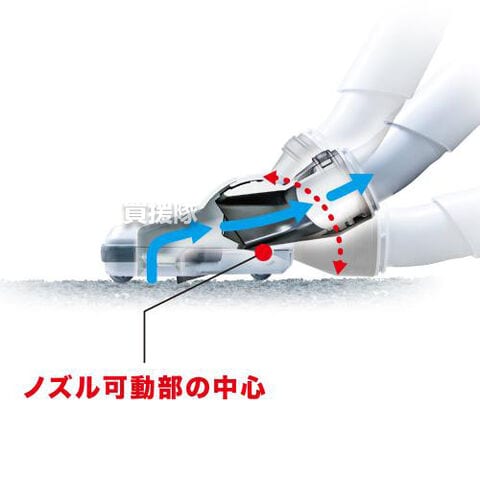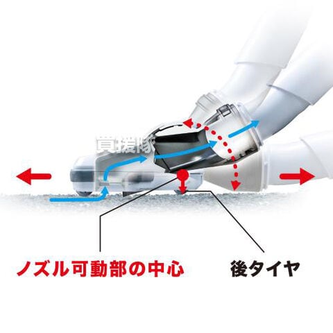 【滑るような操作性】ノズル可動部の中心を後タイヤ軸上に配置。押さえ付ける力による、じゅうたん等への引っかかりを低減。