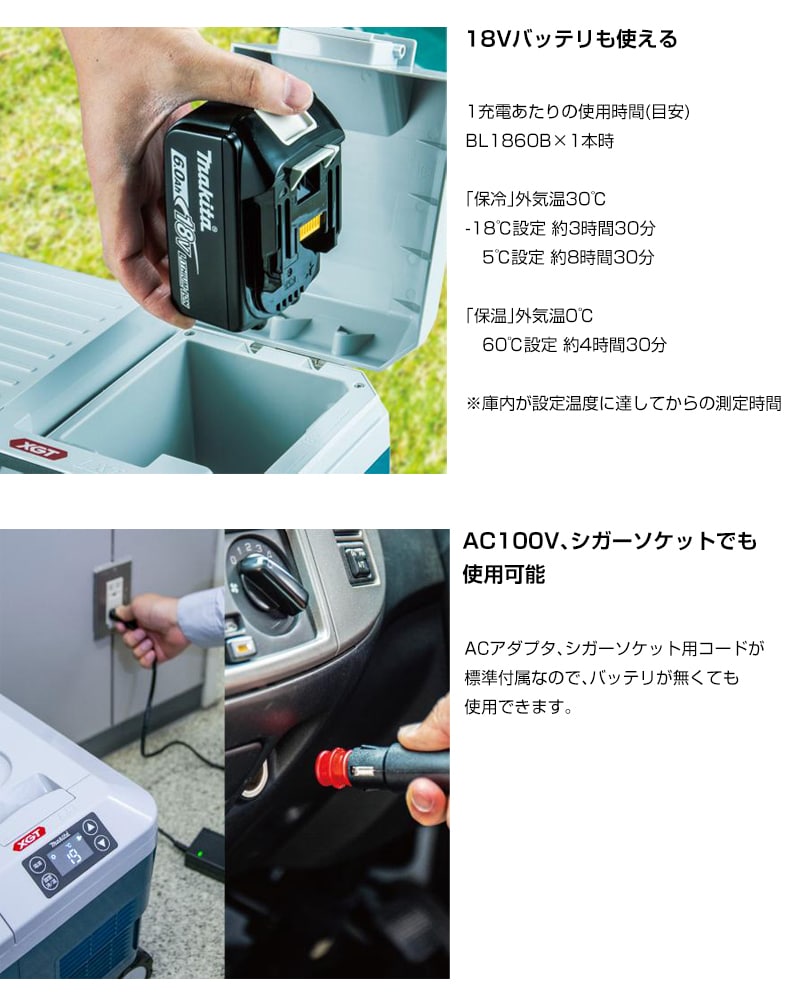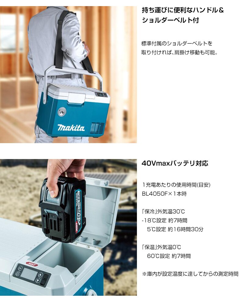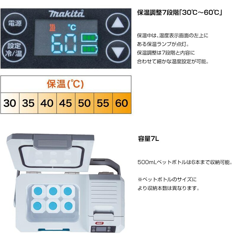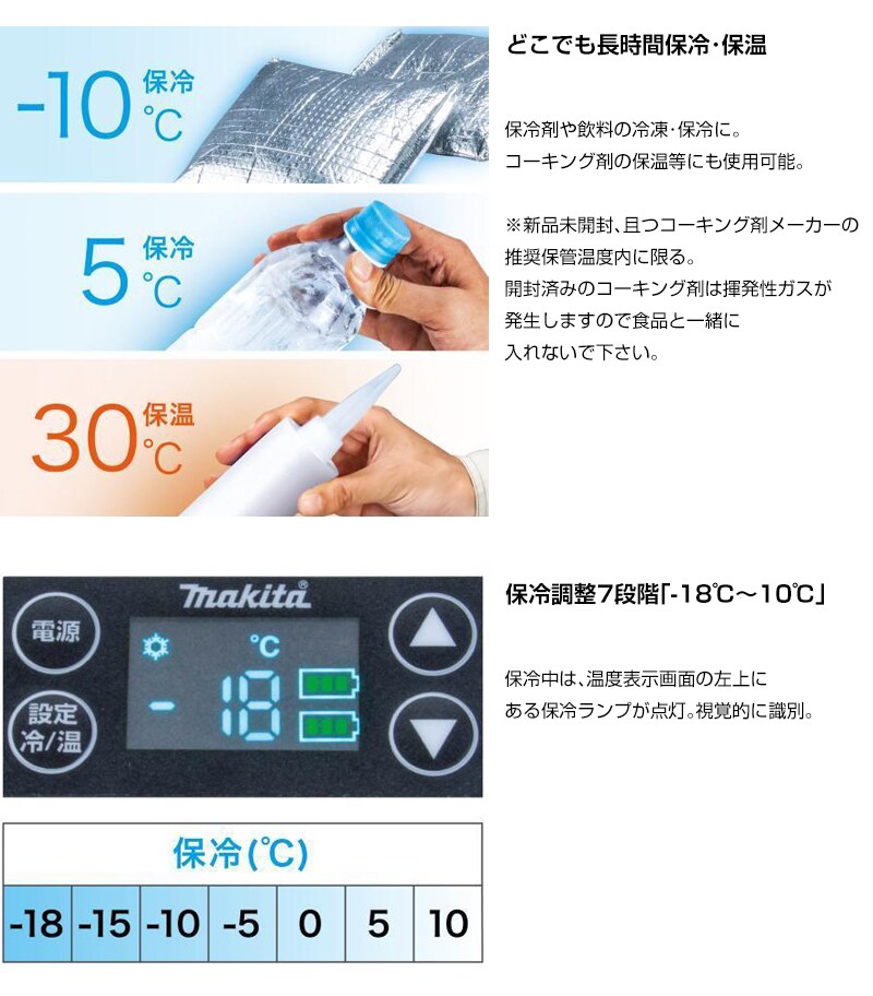 コンパクトな7L仕様、マキタバッテリで-18℃保冷~60℃保温