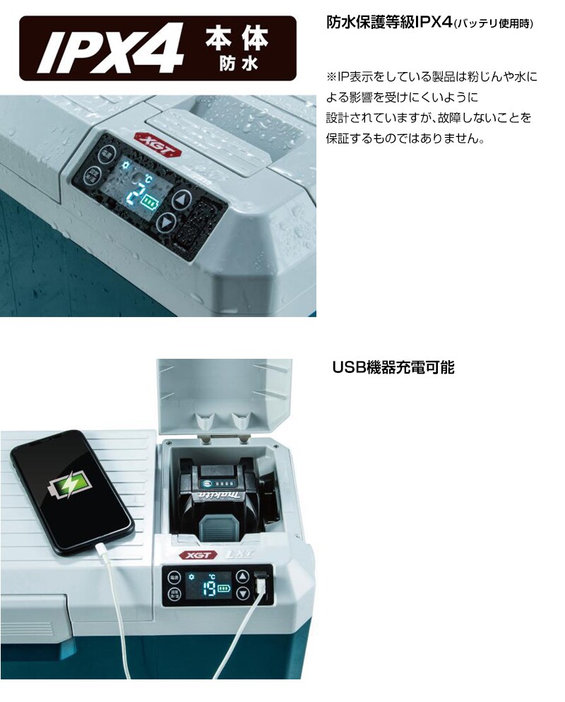 【コンパクト 現場 アウトドア ハンドル ショルダーベルト付 シガーソケット 長時間 保冷 保温 コーキング剤 調整14段階 USB機器充電 栓抜き付 ハイブリッド 充電式 コードレス 電動式 100V 工具 電動工具 DIY ツール 工具 用品 makita 純正品】
